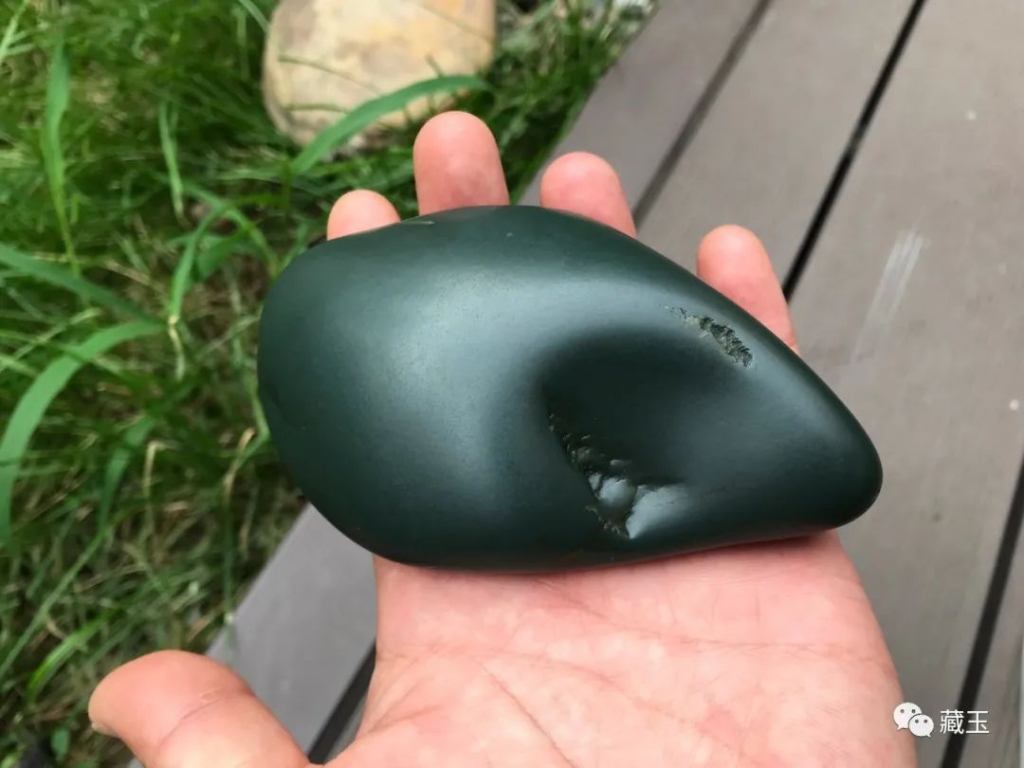 且末料里也有偏蓝调和田玉,下面就是一块典型的且末蓝:
