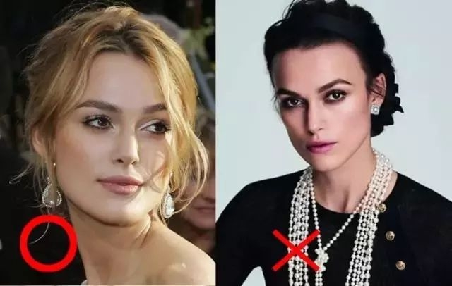 这样的脸型就不适合选择长线型的耳环了,重心偏下的长型耳环会把脸型拉得更长……