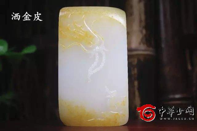 ▲洒金皮,属于和田玉皮色中比较名贵的一种