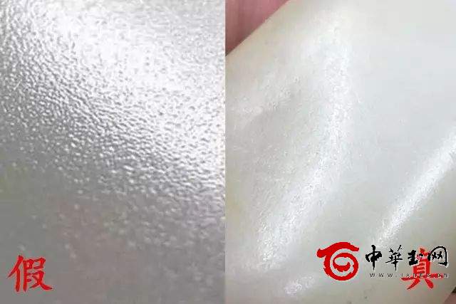 油脂光泽明显清澈,表面像上好的液体油,表面可以清晰映出人的影子,但因为质地非常细腻,所以映出的人影轮廓边缘,有一定模糊略显透明,所以会有些发青的感觉。