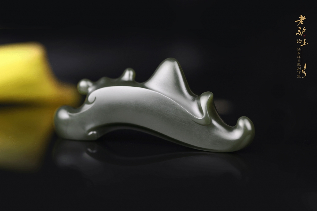 作品多采用大的弧度、极简的线条表达可观可赏可用之处,这也正是秉承工作室众多玉雕作品中“一物多用”的宗旨。