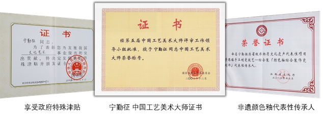 宁勤征是中国工艺美术大师、非遗颜色釉代表性传承人、享受国务院政府特殊津贴,获全国五一劳动奖章。他的作品被中国国家博物馆、中国美术馆、中国工艺美术馆、江西省博物馆、景德镇陶瓷馆等各大博物馆收藏。
