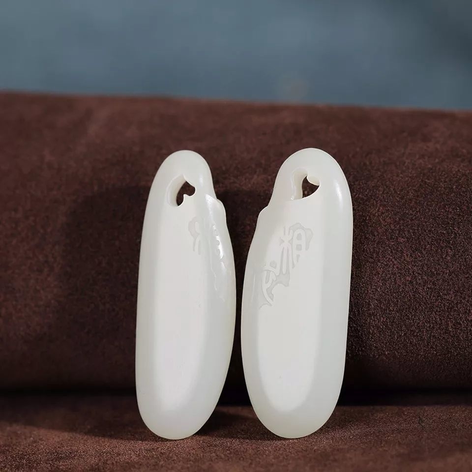 玉面巧雕一对翩翩飞来的蝴蝶,上下翻飞,薄薄的纱翼似乎正被清风拂过。