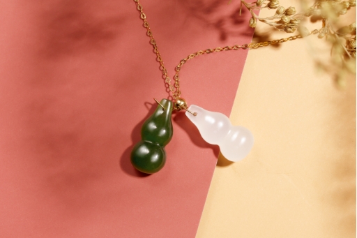 这是一条时尚的百搭款,无论谁来佩戴,都可以呈现出你想要的感觉和气场。两个小小的葫芦在脖颈间非常亮眼,精致而又小巧,给人可爱又萌萌的感觉,白色与绿色的搭配,更是大大增加了时尚的气质。