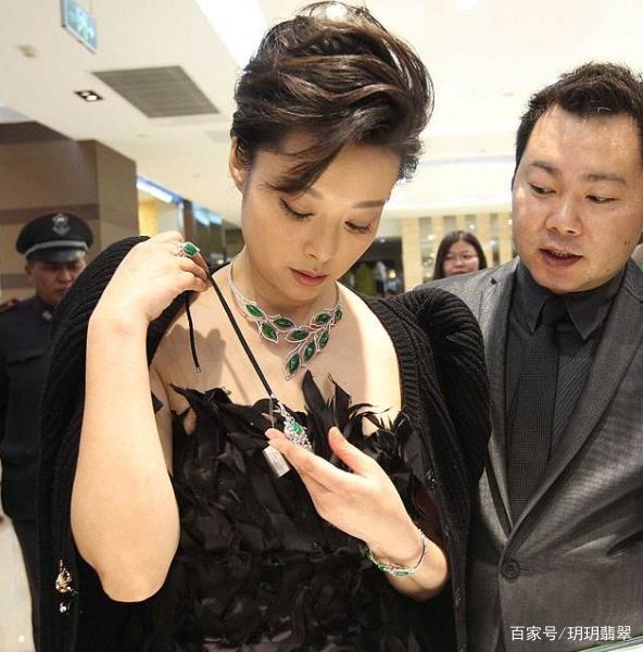 女明星袁立佩戴的满绿色翡翠套件,颜色浓郁饱满、深邃中泛着一股蓝色调,属于真真正正的帝王绿翡翠。区别于常见的绿色翡翠,这类翡翠的储存数量十分稀缺,是翡翠市场中独一无二的存在,它的价值远远超过百万,迈入千万、亿的行列。