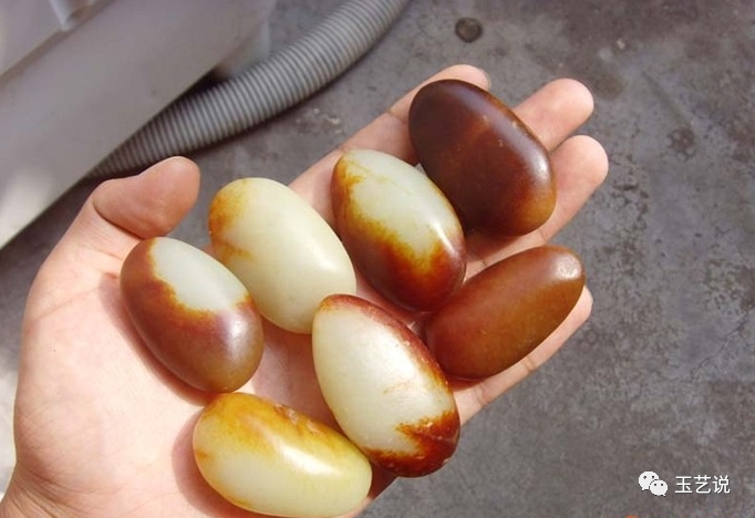 两天后,人工籽料出炉了。这个方法成功率比较低,假如做20个仿籽,只可能有1~2个像真籽料的。因为每块料子的硬度都有稍微的偏差,但这个方法做成功的仿籽,是真的很像,跟一堆真籽料放在一起卖,一不小心老玩家也会打眼。
