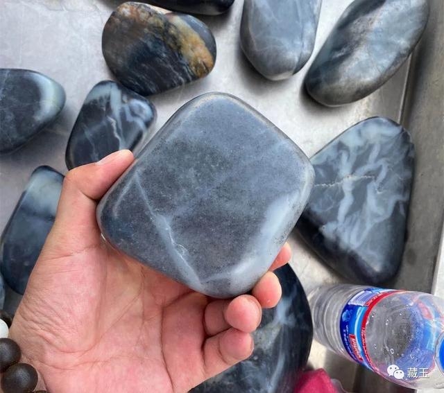 很多人会以为这是青花的籽料,但其实这些都是滚料,用山料青花滚出籽料的形状!