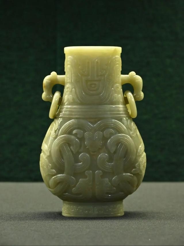 清 兽面纹贯耳玉壶